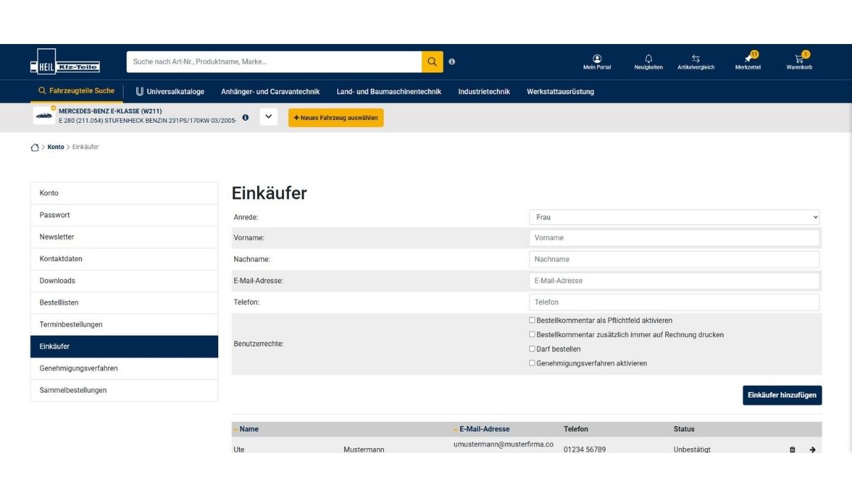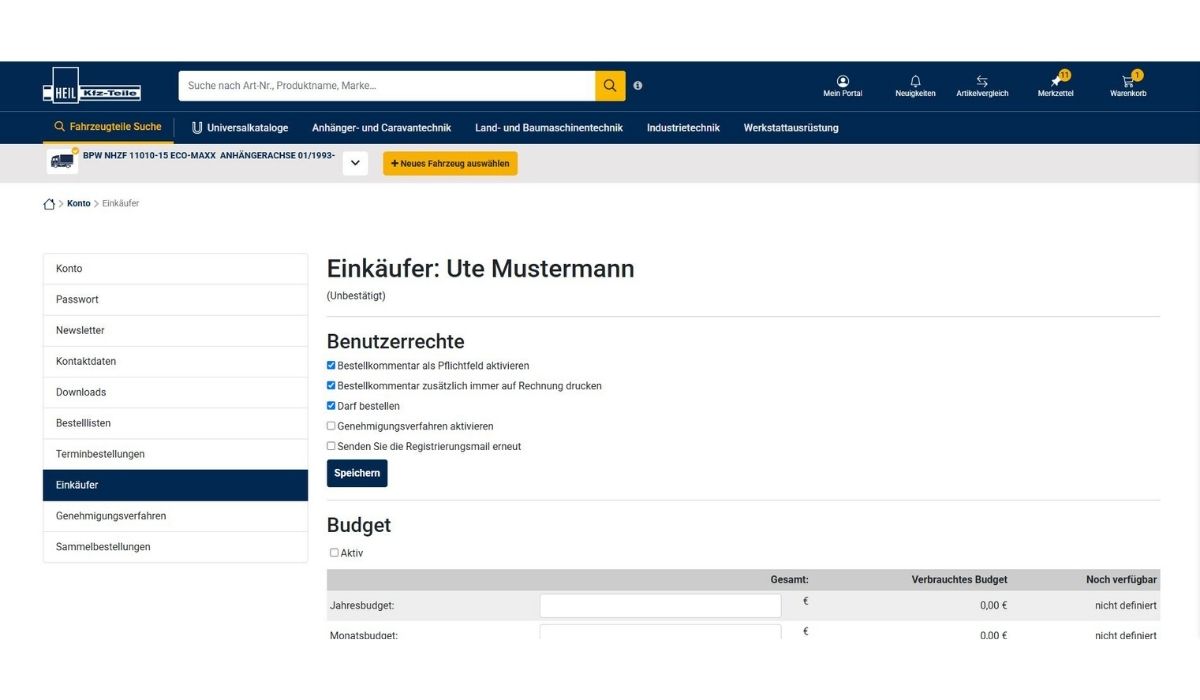 In meinLager können Chefeinkäufer weitere Einkäufer anlegen, die ihm zugeordnet sind (Meister-/ Gesellenrolle). Dabei können den Einkäufern verschiedene Benutzerrechte (inkl. Budgetvorgaben) zugewiesen werden.