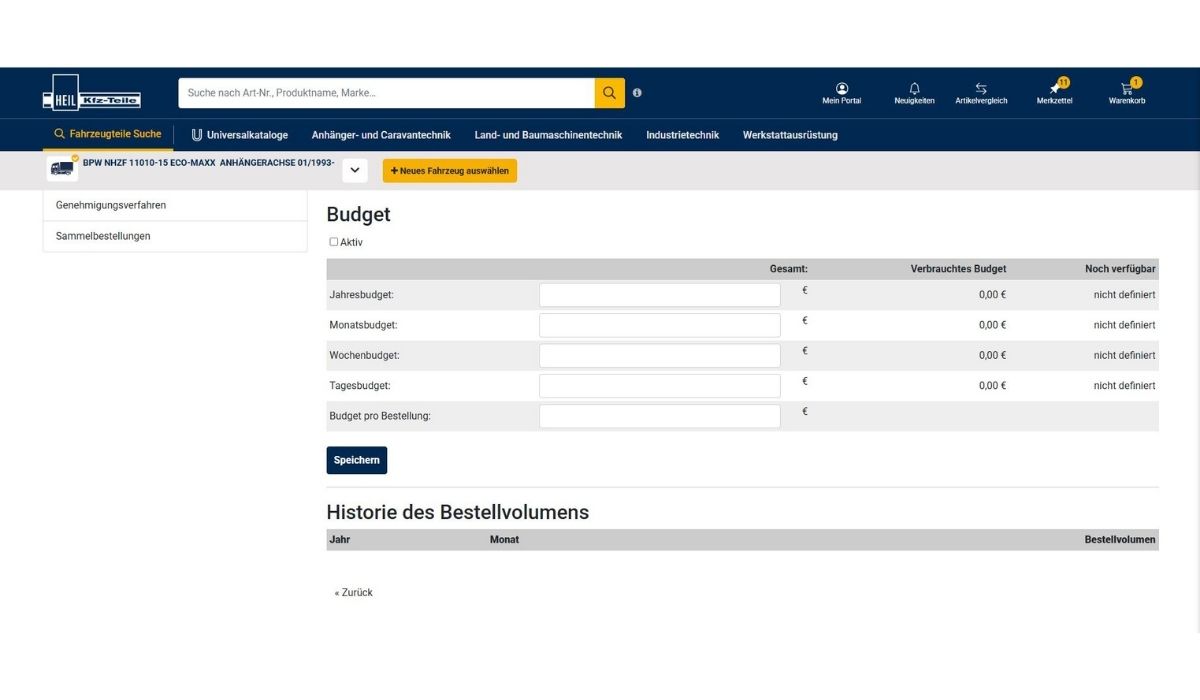 - Budget pro Bestellung