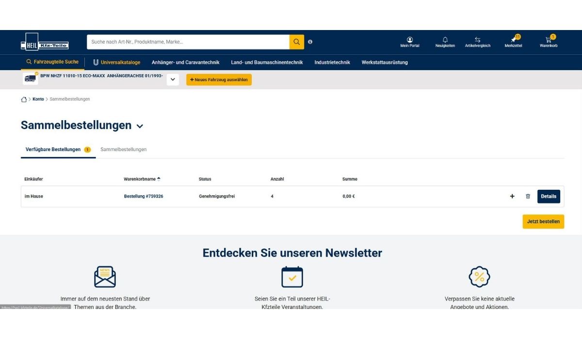 Im entsprechenden Menü in meinLager finden Sie alle Warenkörbe, die Sie zur Sammelbestellung vorgemerkt haben. Im nächsten Schritt entscheiden Sie, welche Sie tatsächlich zur Sammelbestellung hinzufügen möchten und können dann einfach bestellen.