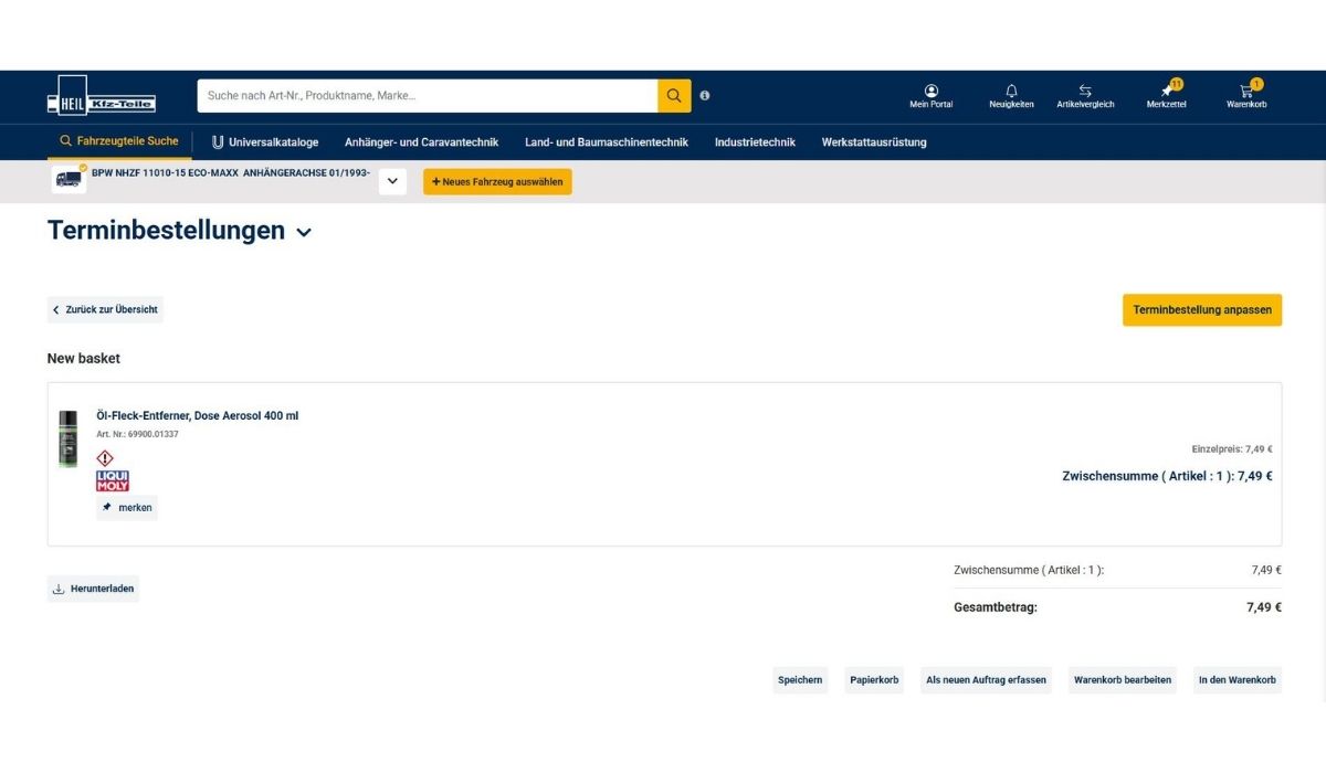 Warenkörbe können in eine Terminbestellung umgewandelt werden. Nachdem die gewünschten Artikel in den Warenkorb gelegt wurden, haben Sie zwei Möglichkeiten: