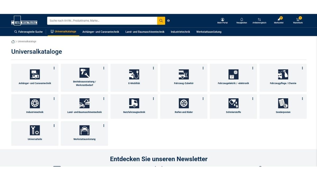 Ebenfalls separat aufgelistet sind unsere beliebten Universalkataloge zu den Themen Industrietechnik, Land- und Baumaschinentechnik, Anhänger- und Caravantechnik sowie Werkstattausrüstung.